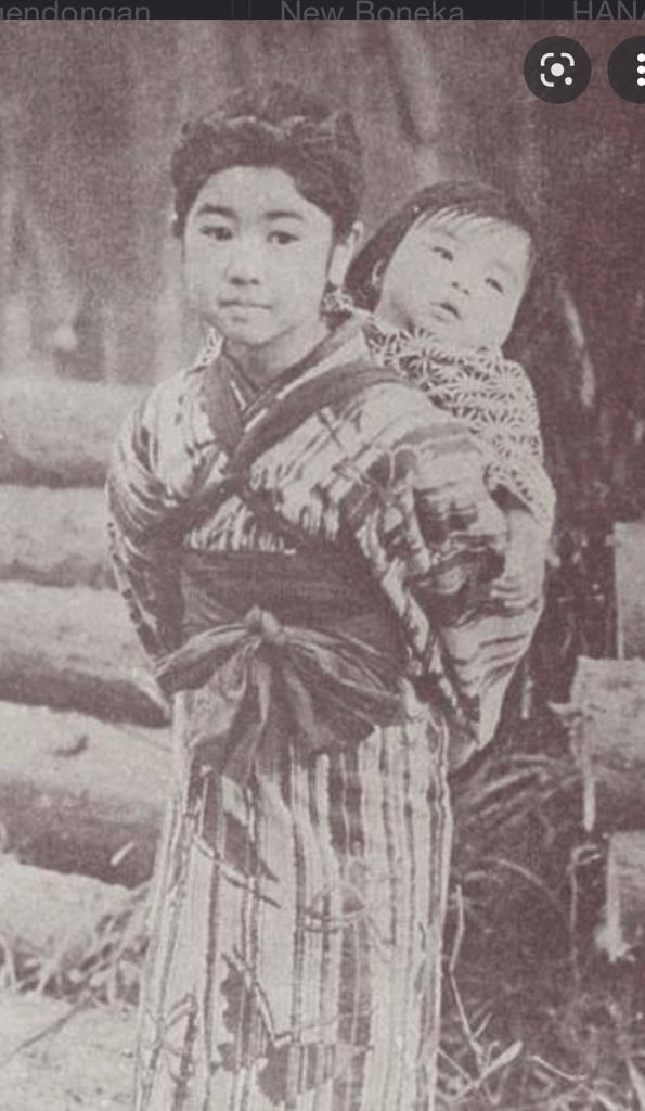 saya tertawa sampai sakit perut (sayang ga saya foto) … papi dengan kaos oblong dan celana pendek, lagi asik masak di dapur, sambil menggendong Arya di punggungnya pakai selendang batik, persis seperti Oshin yang sedang menggendong adiknya itu …… ��